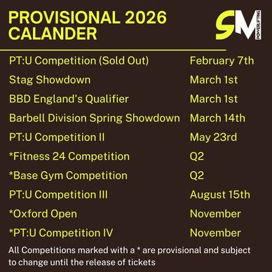 PT:U are hosting a South Midlands Powerlifting Competition Saturday 15th August 2026 there are 25 spots available.